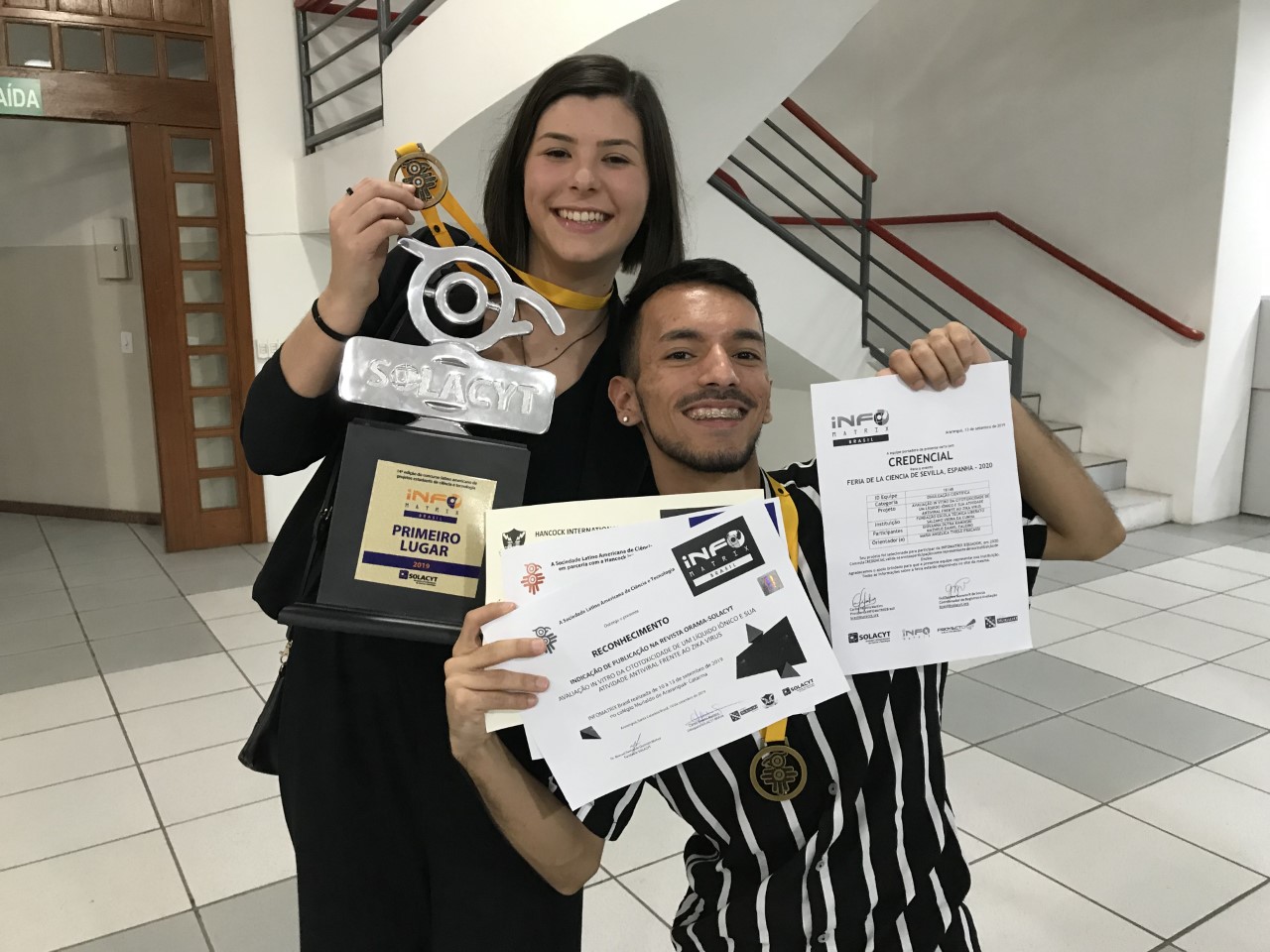 Cursando o último ano do Curso Técnico de Química na maior escola pública do estado, a Fundação Liberato, os futuros químicos canoenses Giovanna Caminsi e Matheus Faleiro conquistaram o 1°lugar na Infomatrix Brasil, realizada entre os dias 10 e 13 de setembro, em Araranguá (SC). A feira foi criada para que estudantes, desde a educação básica até a superior, possam apresentar seus projetos e sejam avaliados por um comitê científico. Para este foram pré-selecionados 40 projetos e participaram 130 participantes de diferentes países.