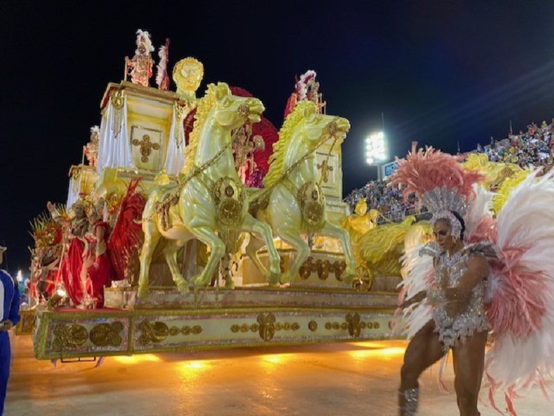 Mocidade – Com muita emoção, a Mocidade Independente de Padre Miguel ingressou na avenida para homenagear a cantora Elza Soares – nascida no bairro da escola e um de seus ícones. A comissão de frente representava a vida de Elza, desde a jovem que subia o morro com uma lata d’água na cabeça até a artista consagrada. Com um belo samba e uma abertura exuberante, a escola destacou as dificuldades na vida de Elza e a resistência que a artista simboliza. Orgulhosa, uma baiana salientava na concentração: “Eu estava aqui quando ela puxou o samba da escola” (na década de 1970). A cantora, plenamente identificada com a escola, encerrou o desfile presente no último carro. Samba, evolução, harmonia e competência em outros quesitos colocam a Mocidade como favorita ao título.
