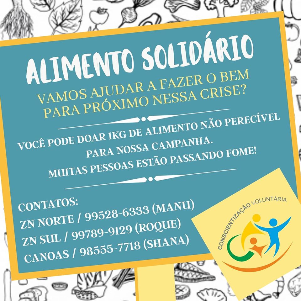 A ONG Conscientização Voluntária que já realiza diversas ações durante o ano, após receber inúmeros pedidos de ajuda, resolveu fazer a campanha “Alimento Solidário”, com o objetivo de ajudar a população mais vulnerável, que mora em periferias, moradores de rua, pessoas em situações de risco e locais que precisam de algum tipo de arrecadação, durante o período de isolamento social que está deixando todo mundo dentro de suas casas.