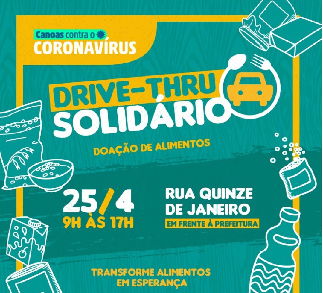 A Prefeitura de Canoas, em parceria com o Banco de Alimentos, estará promovendo o primeiro “DRIVE-THRU SOLIDÁRIO”, no próximo sábado, 25, das 9h às 17h, em frente ao prédio da Prefeitura de Canoas (Rua 15 de Janeiro, nº 11 – Bairro Centro).