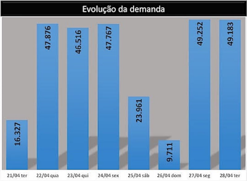 Na terça-feira, 28, a Trensurb transportou 49.183 passageiros, o que representa uma redução de 68,8% em relação à média de usuários transportados por dia útil na primeira quinzena de março (157.636). O número, no entanto, sinaliza a retomada gradual da demanda do metrô. A Trensurb chegou a transportar 27.489 passageiros em 26 de março – correspondendo a uma queda de 82,6% em relação à média da primeira quinzena de março.