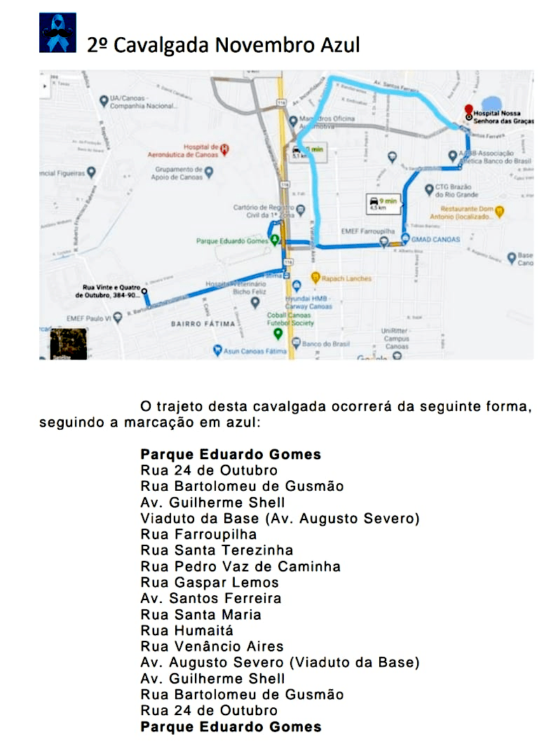 Neste ano, além da cavalgada haverá uma carreata para aqueles que optarem pelo transporte. A concentração será às 7h30, onde será servido um café no Piquete Tio Ivo (localizado na Área campeira do Parque Eduardo Gomes), e a saída está marcada para as 8h30.