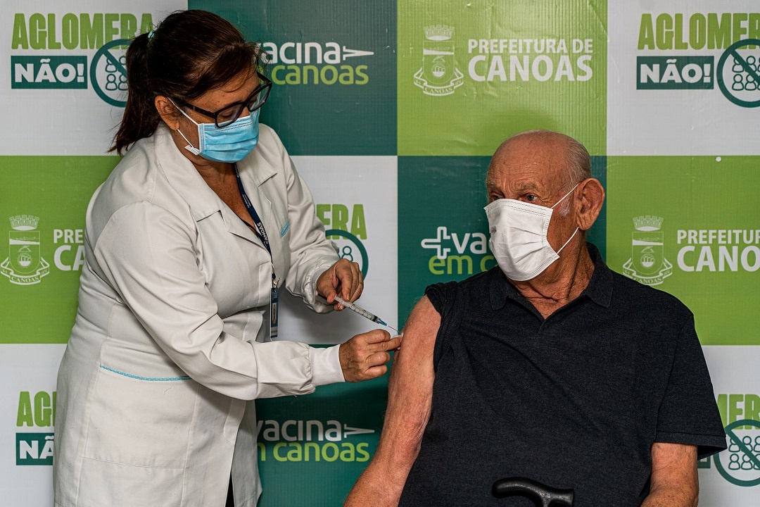 Acaba de acontecer, na tarde desta terça-feira, 19, no Hospital Universitário (HU) de Canoas, a aplicação da primeira dose da vacina contra a Covid-19 dos primeiros canoenses: Valdemar Ferla, de 82 anos, e a técnica em enfermagem Lisete Márcia Hendges, de 49 anos.