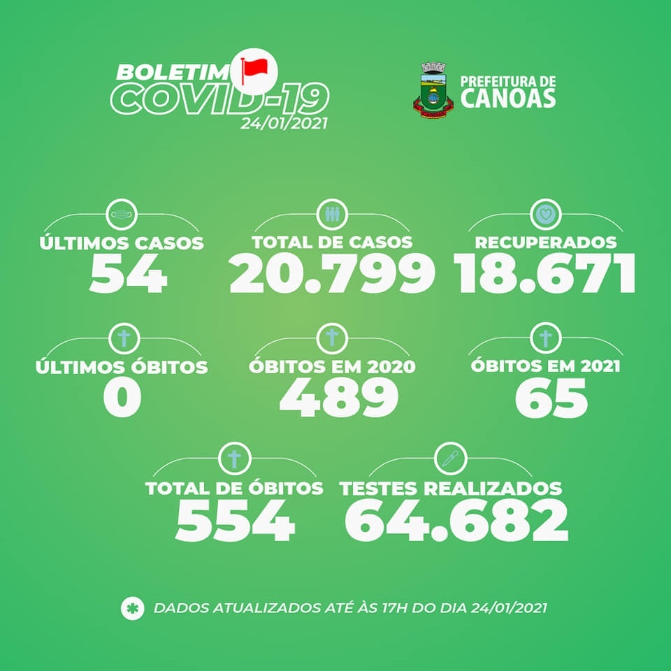 O último boletim sobre a Covid-19 em Canoas foi divulgado em uma rede social da Prefeitura Municipal. Nele há o registro de mais três mortes por conta do coronavírus no município.
