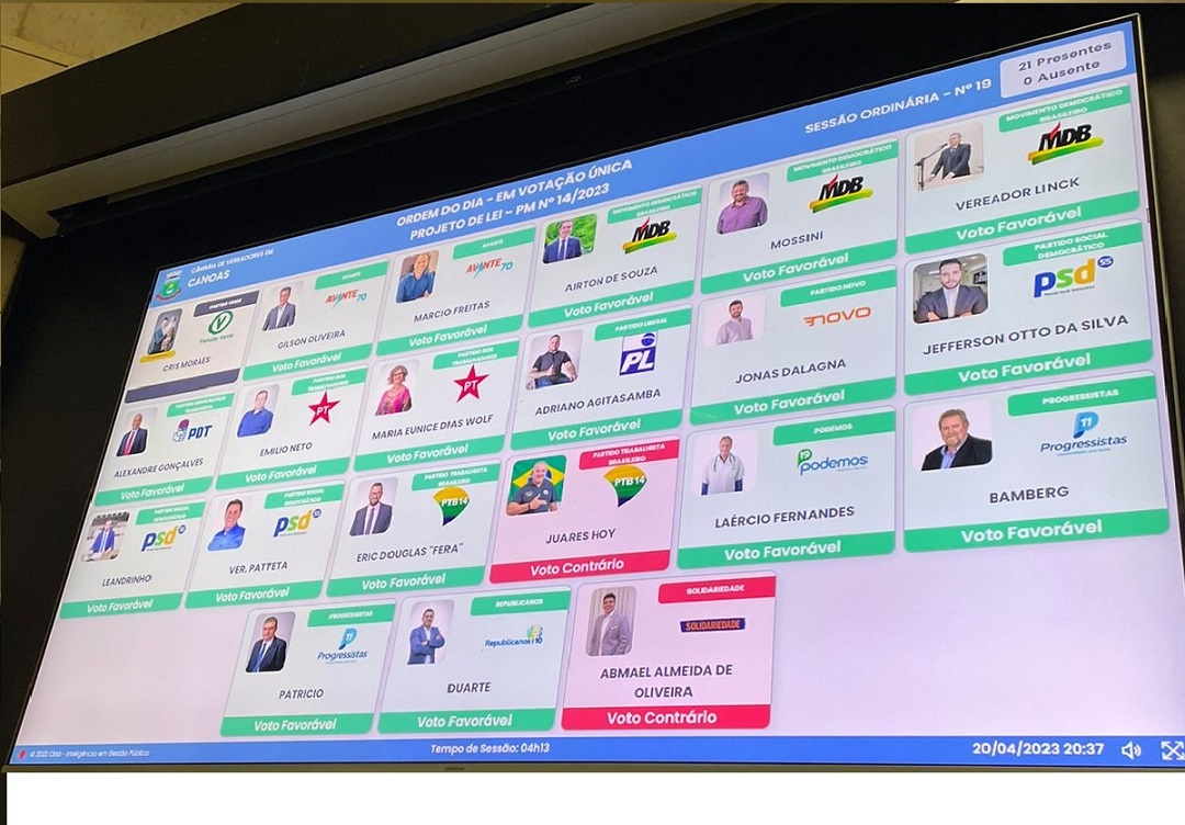 Após um Grande Expediente, realizado na noite da quinta-feira, 20, onde o Secretário de Relações Institucionais, Mario Cardoso e o Secretário da Fazenda, Adriano Ponticelli sanaram diversas dúvidas sobre a reforma administrativa, a Câmara Municipal de Canoas aprovou por 18 votos a dois a reestruturação proposta pelo Executivo.