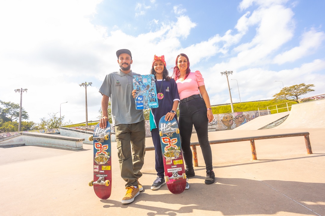 Quem desembarcou no Parque Eduardo Gomes foi a skatista Maria Lúcia Campos, do bairro Mato Grande. A menina de 13 anos tinha acabado de chegar de São Paulo, onde conquistou o terceiro lugar no campeonato amador de skate, promovido pela skatista Pâmela Rosa. Acompanhada dos pais, ela não perdeu tempo e foi para a pista de skate do Eduardo Gomes, onde posou para fotos e compartilhou sua felicidade com os demais.