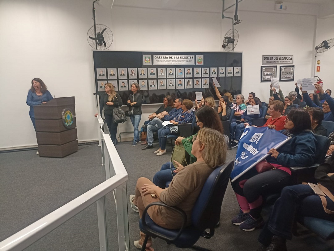 O Sindicato informa que a Câmara Municipal de Vereadores está proporcionando um tempo para o debate do PL 012/23. Dessa forma, houve a possibilidade de realizar a Assembleia Extraordinária na data de 03.05.23, também haverá uma reunião promovida pelo Poder Legislativo no dia 08.05, às 18h, em que o Presidente da Casa, Vereador Rodrigo Aveiro (Pedal) estendeu o convite ao Poder Executivo, Sindicato e todos os professores da rede municipal”.
