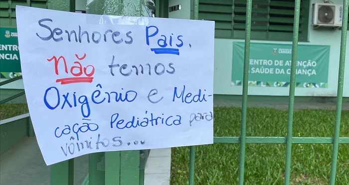 Ainda nesta manhã, na Centro de Atenção à Saúde da Criança, um cartaz colado nas grades da unidade chamou a atenção, mas logo teve a ordem de ser retirado (Confira abaixo).