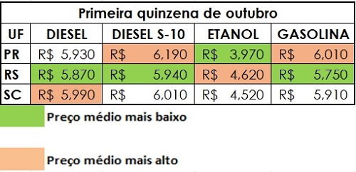 “Entre os destaques nacionais, o Rio Grande do Sul registrou os dois tipos de diesel com o preço médio mais baixo de todo o País, além da gasolina com o menor preço, vendida a R$ 5,73.