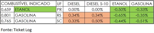Entre os Estados da região, o etanol, quando comparado à gasolina, foi considerado economicamente mais vantajoso para abastecimento apenas no Paraná.