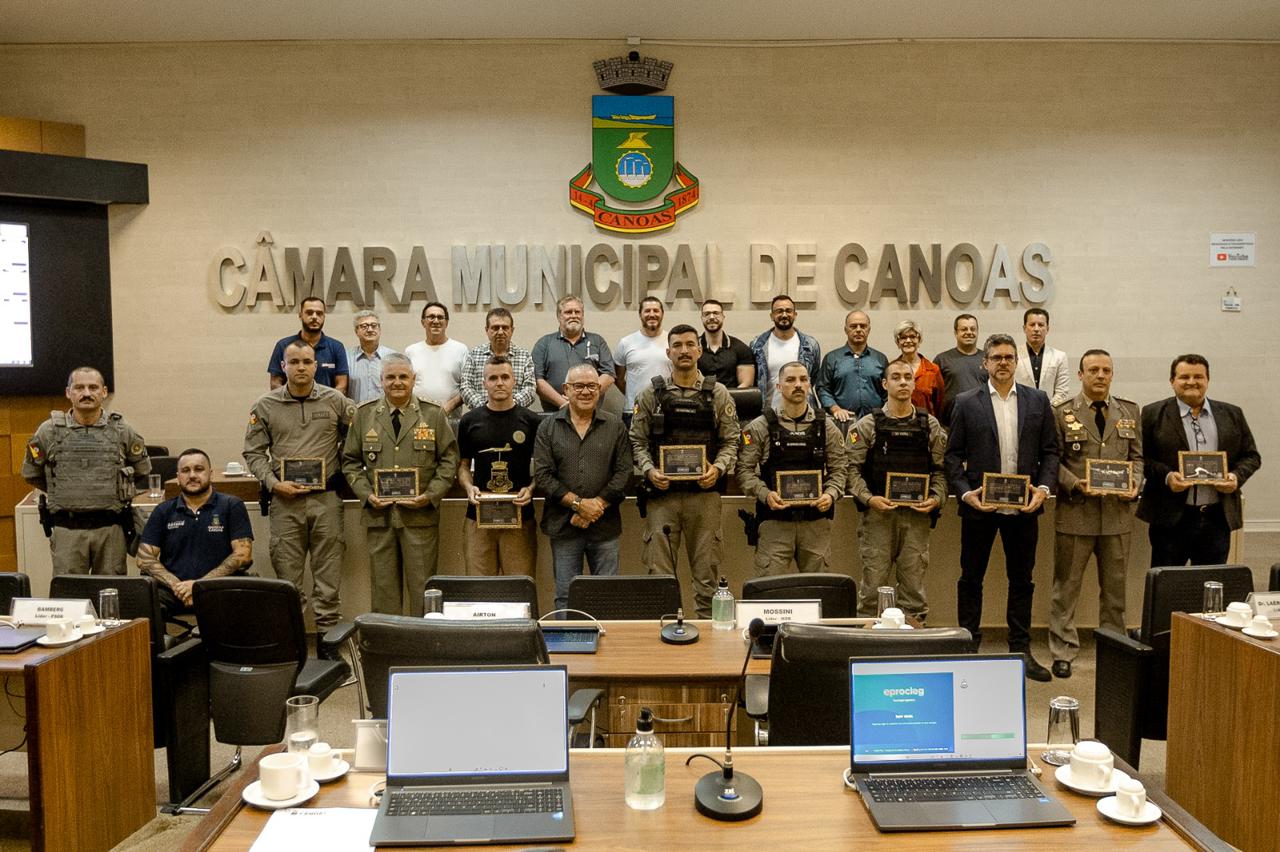 A Câmara de Vereadores de Canoas prestou uma homenagem às forças de segurança pública, com a participação de membros da Brigada Militar e da Polícia Civil, na sessão desta terça-feira, 23. O evento, proposto pelo vereador Juares Hoy (Progressistas), coincidiu com as celebrações do Dia do Policial, ocorrido em 21 de abril.