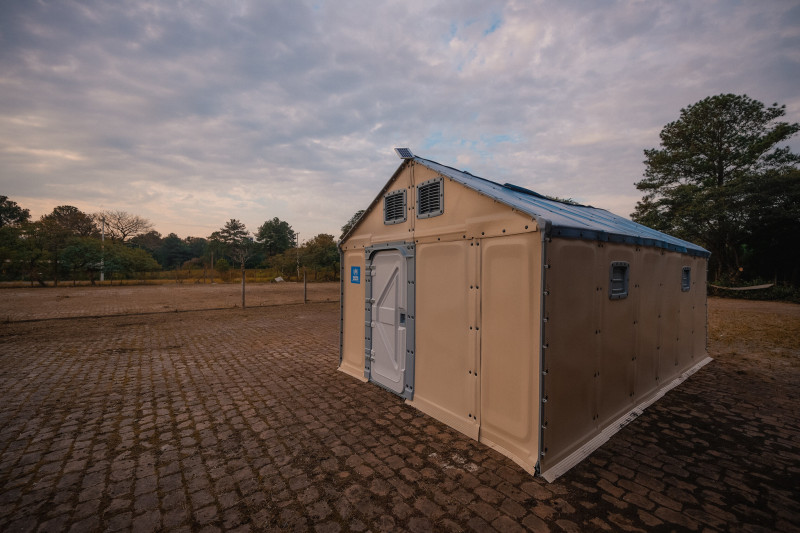A primeira casa emergencial dos Centros Humanitários do governo estadual foi instalada na quinta-feira, 6, em Canoas. A montagem foi feita por membros do Exército Brasileiro e da Agência das Nações Unidades para Refugiados (Acnur) em um dos dois Centros Humanitários de Acolhimento (CHAs) canoenses, próximo à Refinaria Alberto Pasqualini (Refap).