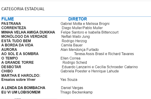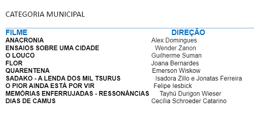 Ao todo, são 35 selecionados para as três categorias: 11 na Estudantil, nove na Municipal e 17 na Estadual. Dois filmes da categoria Municipal foram classificados também para a Estadual, o que leva ao total de 35 curtas-metragens nas mostras competitivas de 2024.