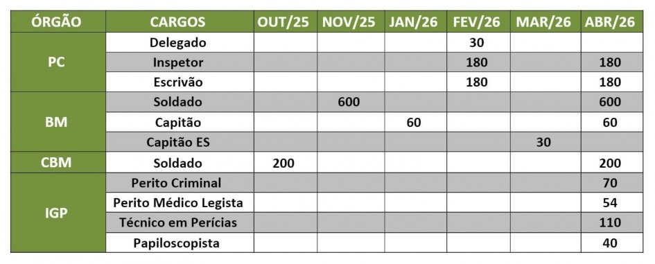 Os novos certames serão organizados pelas vinculadas da SSP em parceria com a Secretaria de Planejamento, Governança e Gestão (SPPG), responsável pelos procedimentos de gestão de pessoal do Poder Executivo.