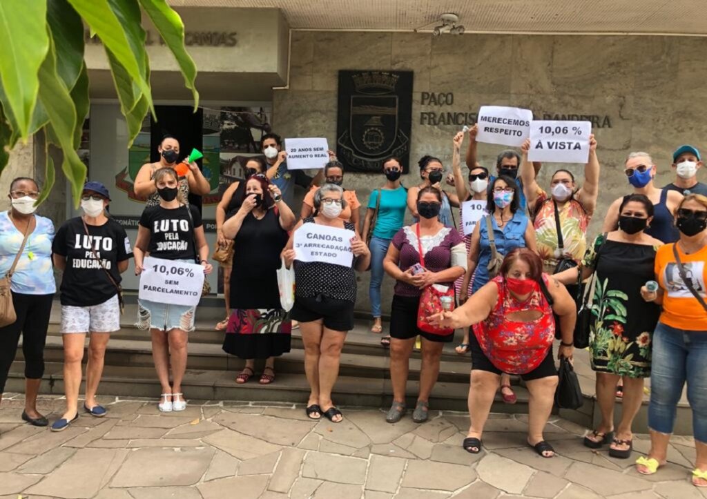 O texto foi votado e aprovado em Sessão Extraordinária nesta quinta-feira, 3, na Câmara de Vereadores, sob protesto do Sindicato dos Profissionais em Educação de Canoas (Sinprocan), que reuniu integrantes em frente ao órgão para cobrar que o pagamento fosse feito à vista e reivindicar aumento real de salário da classe, que não ocorre há 20 anos, conforme relatou a vice-presidente do Sinprocan, Simone Riet Goulart. Apenas cinco vereadores se manifestaram contra a proposta: Juares Hoy (PTB), Eric Douglas (PTB), Alexandre Gonçalves (PDT) e Jonas Dalagna (Novo).