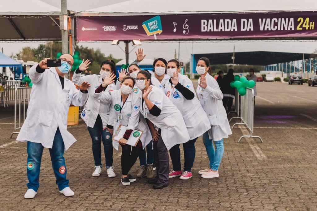 Teve vacinação para a população de 18 anos durante a semana em Canoas e até uma balada que contou com música ao vivo e 24hs de duração para que se chegasse à marca de cerca de 90% da população vacinada com a primeira dose contra a Covid-19.